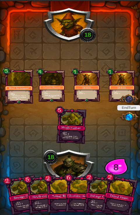 Elegí tu facción — Goblins, Caballeros y Magos, o Ogro-Chamán — y usá tus cartas para dominar el campo de batalla.